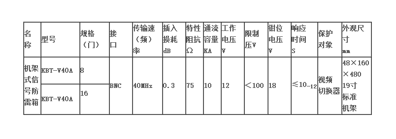 KBT集中式視頻防雷箱采用19英寸標準機架式結(jié)構(gòu),適用于多路視頻線路的集中保護,每路完全獨立,互不影響和干擾。主要用于視頻監(jiān)控系統(tǒng)等防雷擊及電涌保護,分為8口、16口結(jié)構(gòu)。